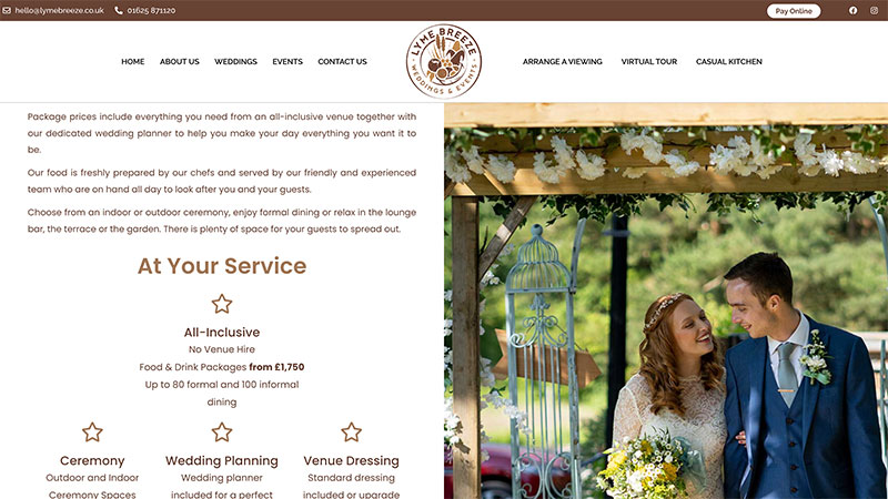 Kate needed two distinct websites for her two audiences, and for the wedding website, she needed to be able not only to capture leads from interested brides and grooms but fo them to be able to book viewings and to pay online for reservations.